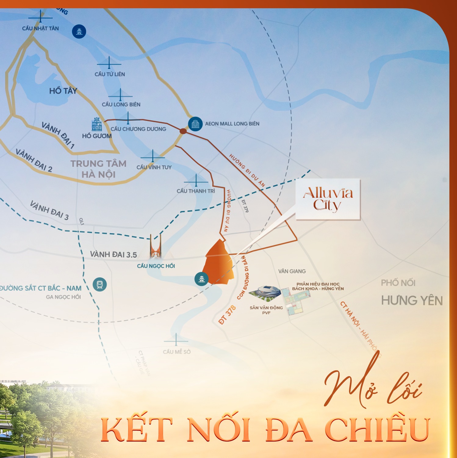 Không chỉ sở hữu vị trí thuận lợi, Alluvia City còn hưởng lợi từ hàng loạt dự án hạ tầng giao thông quan trọng đang được triển khai tại khu Đông Hà Nội.