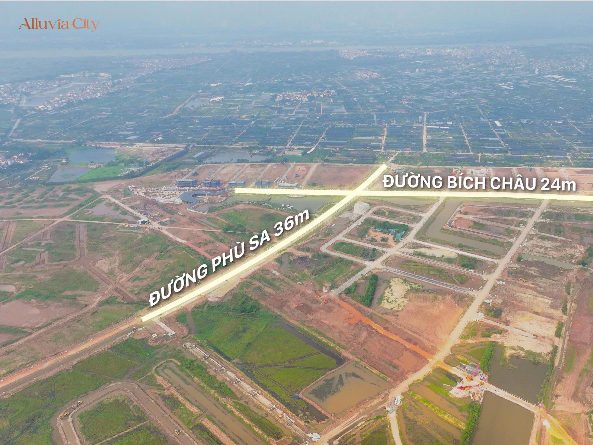 Ở góc độ hạ tầng, tiến độ Alluvia City tiếp tục ghi nhận những bước tiến rõ rệt tại trục giao thông chính của phân khu Alluvia Onsen. Hai tuyến đường quan trọng là Bích Châu (lộ giới 24m) và Phù Sa (lộ giới 36m) đã hoàn tất các công đoạn san lấp, trải nhựa và đang được lắp đặt đồng bộ hệ thống hạ tầng kỹ thuật, phòng cháy chữa cháy.