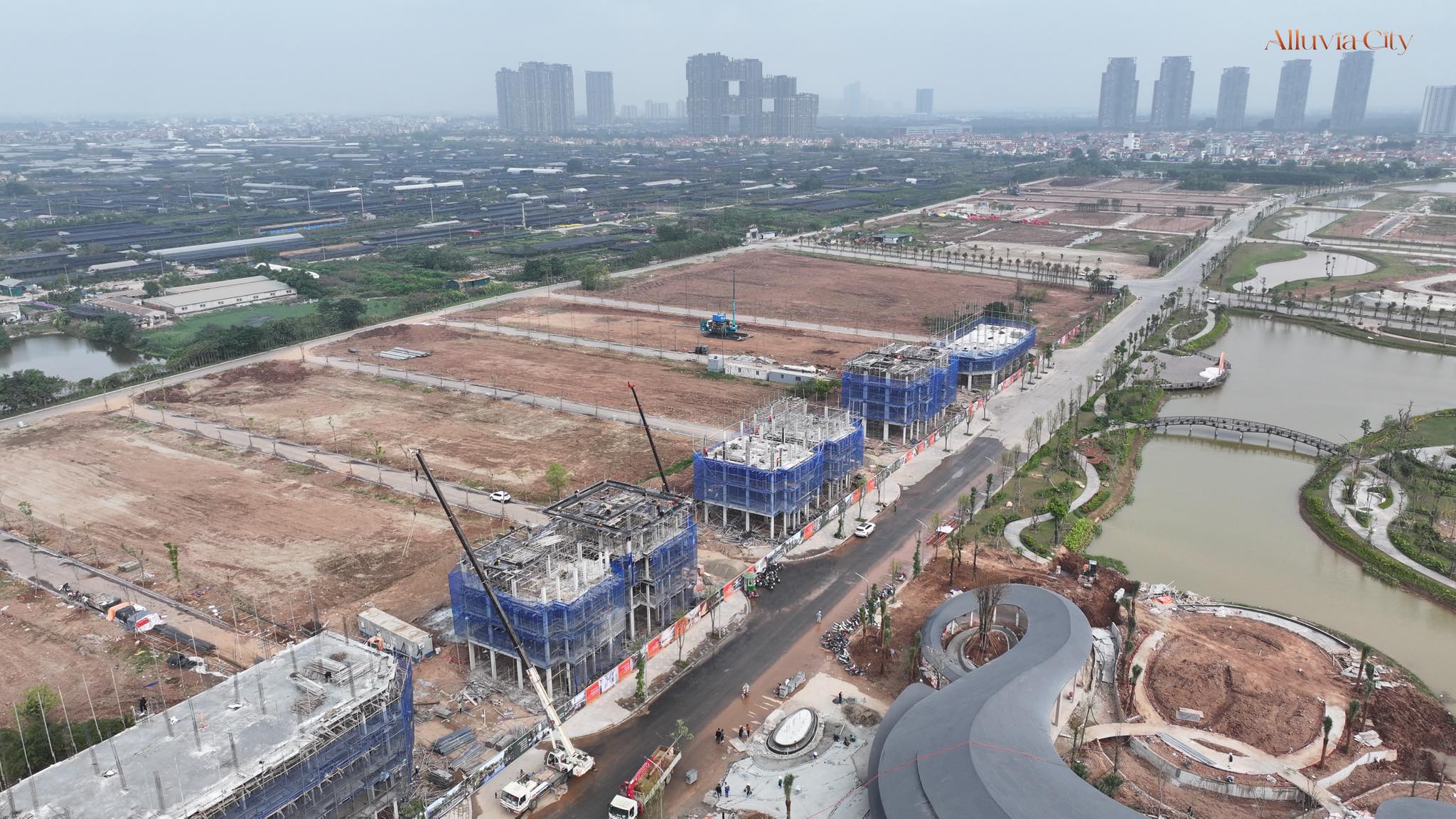 Theo ghi nhận mới nhất, tiến độ Alluvia City trong giai đoạn cuối năm 2025 đang bước vào giai đoạn tăng tốc, với sự xuất hiện đồng thời của nhiều hạng mục từ hạ tầng, nhà thấp tầng cho tới các công trình điểm nhấn. Các khu vực thi công được tổ chức bài bản, có sự phân chia rõ ràng từng phân khu, đảm bảo triển khai song song mà vẫn giữ được tính đồng bộ trong tổng thể.