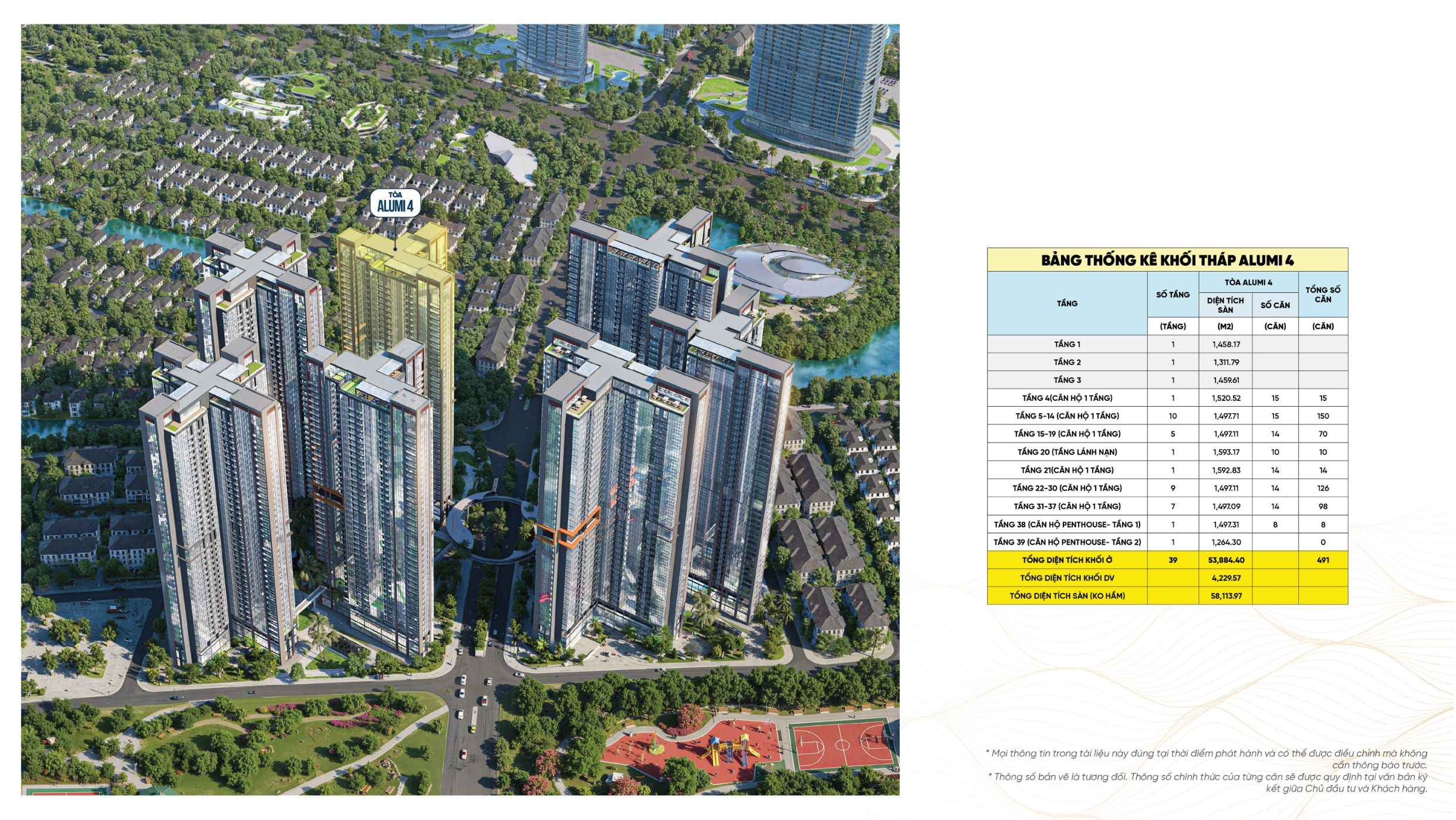 Với quy mô 39 tầng, khoảng 491 căn hộ, thiết kế mặt bằng Alumi 4 được nghiên cứu kỹ lưỡng nhằm tối ưu công năng, tầm nhìn và trải nghiệm sống. Từng tầng đều có sự phân bổ hợp lý giữa không gian riêng tư và tiện ích chung, tạo nên một cấu trúc vận hành hiệu quả và khác biệt.