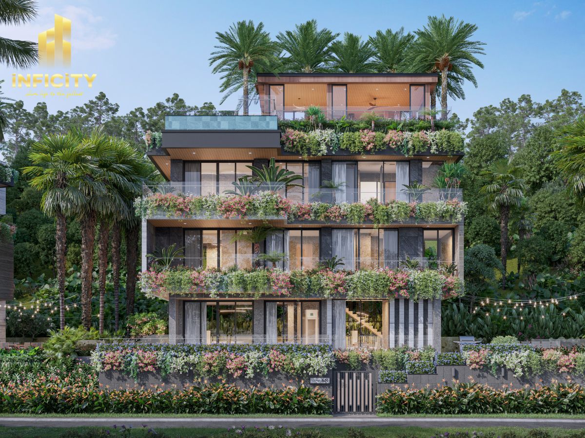 Mỗi căn biệt thự ở đây chính là một tác phẩm nghệ thuật tinh tế, nơi bể bơi trên mái lấp lánh dưới nắng mai, ban công riêng tư mở rộng ôm trọn gió trời, vách kính lớn trong suốt mời gọi ánh sáng len lỏi, và khoảng sân vườn xanh mướt thì thầm lời ru của cỏ cây.