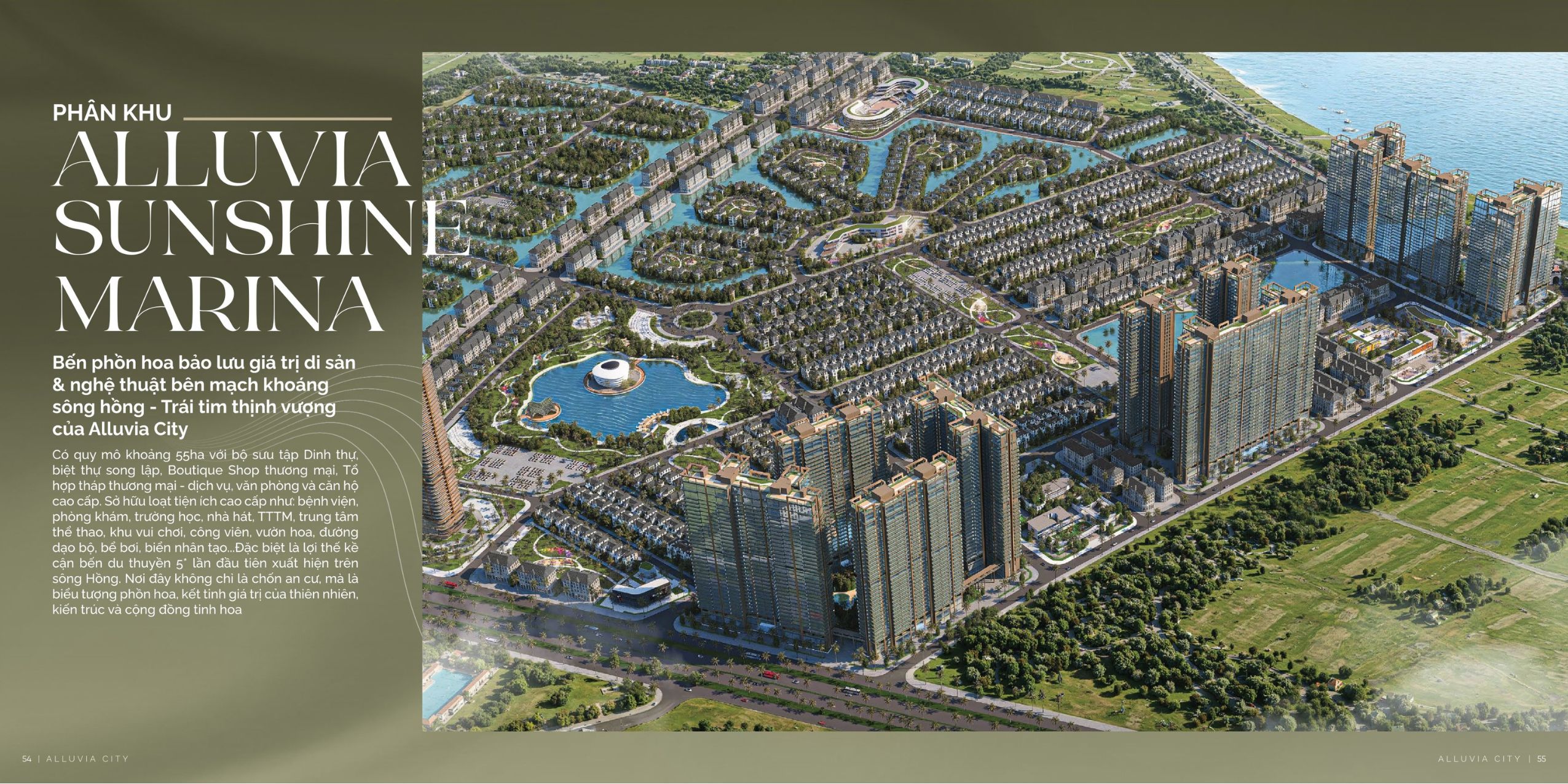 Alluvia Sunshine Marina mang đến một sắc thái hoàn toàn khác – sôi động, hiện đại và giàu tiềm năng phát triển. Với quy mô khoảng 55ha, phân khu này được định hướng trở thành trung tâm thương mại – dịch vụ và giao thương của toàn dự án.