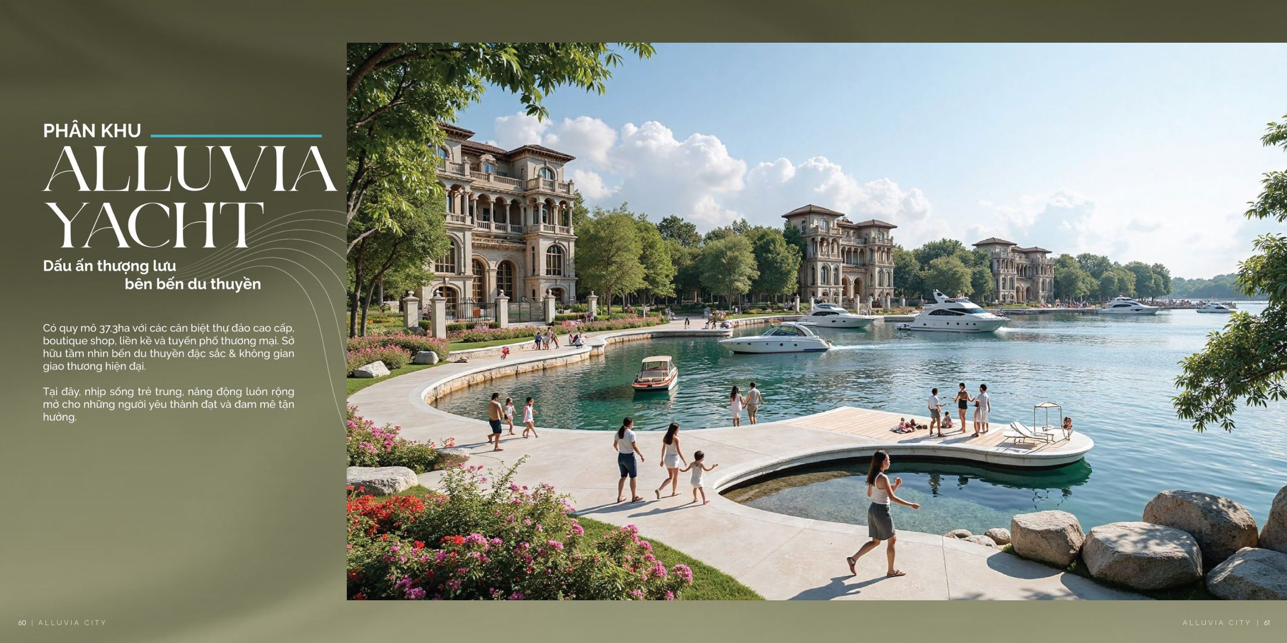 Sự kết hợp giữa kiến trúc sang trọng, cảnh quan nước và tiện ích hiện đại giúp Alluvia Yacht trở thành một trong những phân khu đáng sống nhất tại dự án.
