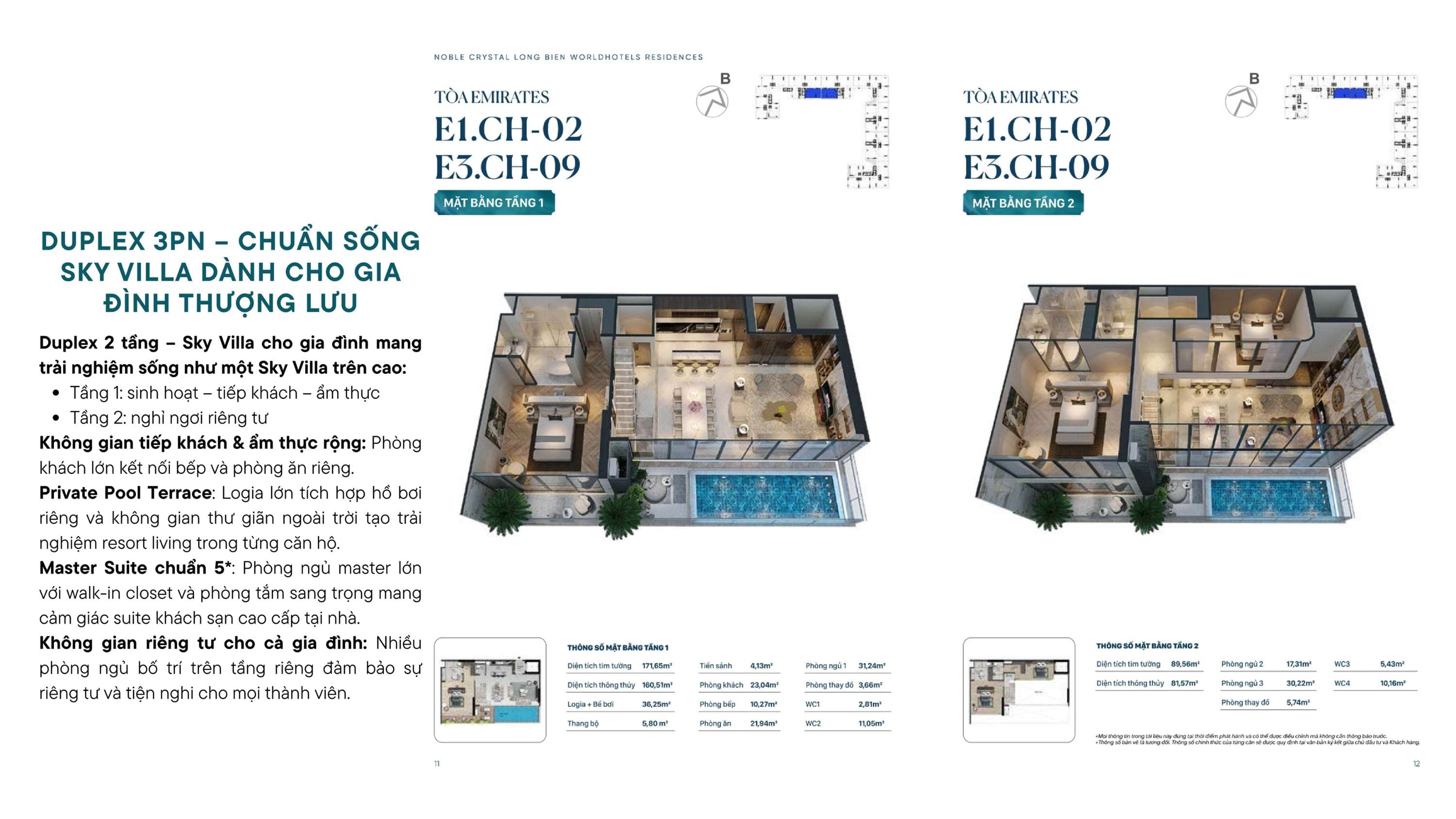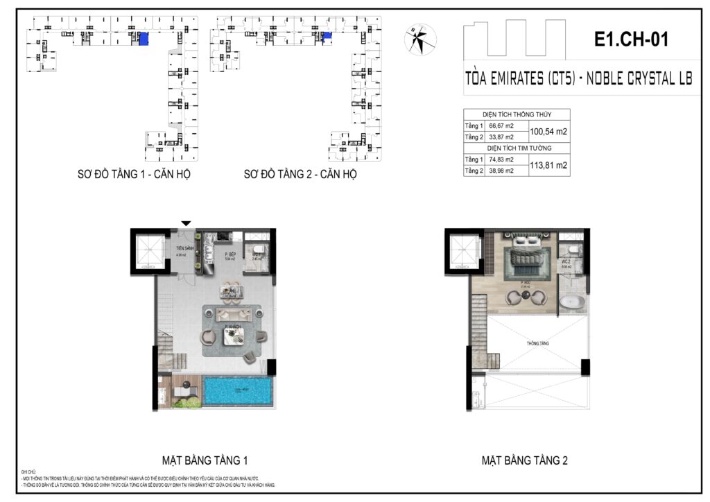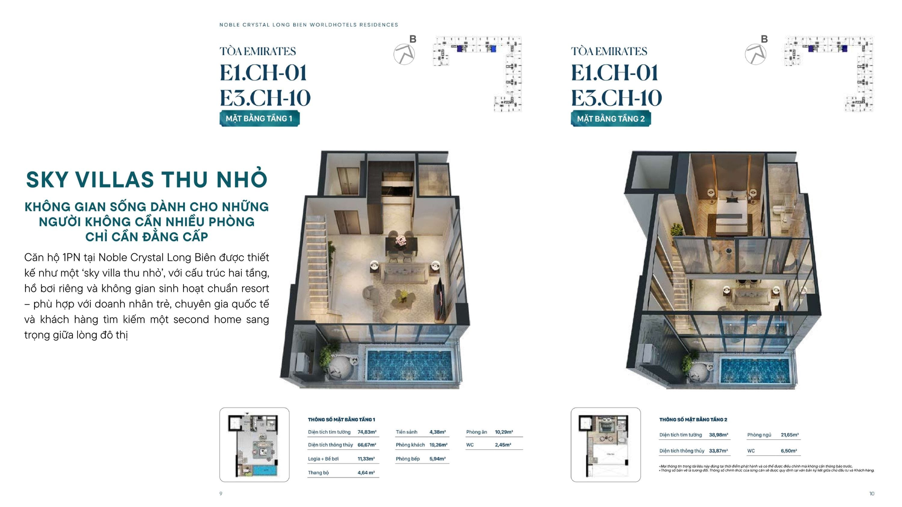 Căn hộ 1PN tại Noble Crystal Long Biên được thiết kế như một “sky villa thu nhỏ”, với cấu trúc hai tầng, hồ bơi riêng và không gian sinh hoạt chuẩn resort – phù hợp với doanh nhân trẻ, chuyên gia quốc tế và khách hàng tìm kiếm một second home sang trọng giữa lòng đô thị.